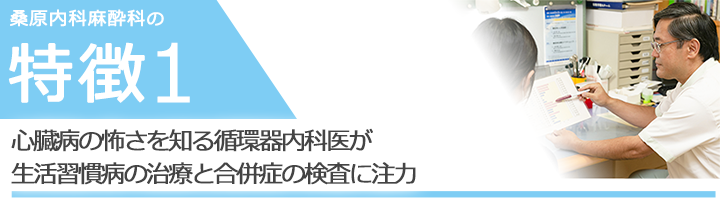 高血圧、糖尿病、高脂血症、高尿酸血症などの治療を継続することが必要な生活習慣病、循環器内科を中心に日本循環器学会認定循環器専門医が診療。通院しやすいように土曜日も夜19時まで。ジェネリック医薬品も院内処方して医療費負担の軽減につとめています。